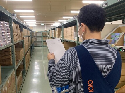 マルイの店舗やエポスカードセンター、グループ各社から、事務用品・包装用品などの注文を受け、出荷します